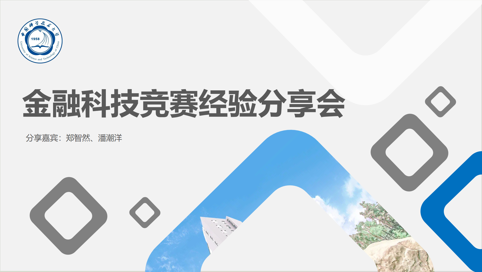 为了提升同学们对金融科技竞赛的认识,增强实战能力,中国科大MF学生联合会学习部于2025年4月7日晚在线举办了金融科技竞赛经验分享会。本次分享会特邀2023级MF学生郑智然和潘潮洋作为主讲嘉宾,他们凭借丰富的竞赛经验和独到的学习方法技巧,为与会同学分享了关于Kaggle竞赛、招商银行数字金融训练营、“实业智投”全国算法挑战大赛以及中国研究生金融科技大赛等多项赛事的宝贵经验和深刻见解。