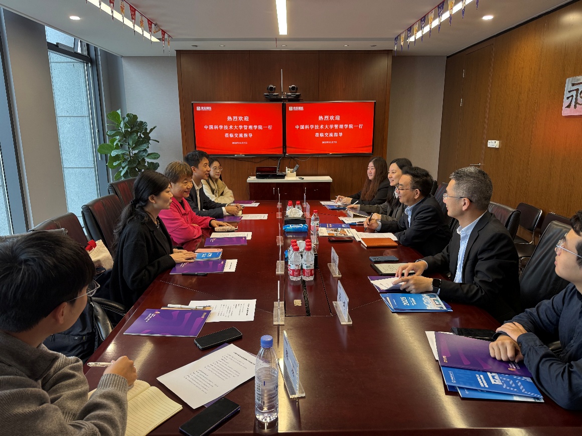 3日上午,苟小菊一行首站到访蚂蚁集团,与信贷风险人力资源专家黄辉,信贷风险策略资深专家马俊杰,信贷风险模型资深专家黄凯以及2022级MF校友、信贷风险策略研究员詹沛文等座谈。苟小菊首先详细介绍了MF项目的课程设置,强调项目在金融科技方向的培养特色与优势。蚂蚁集团专家指出,课程应进一步强化前沿内容,并提升学生的综合素养与持续学习能力。校友詹沛文结合自身职场经历,分享了风控知识与实操能力在职业发展中的重要作用。通过此次交流,双方在共建实习基地、业界导师聘请、联合开展课题研究等方面达成初步合作意向。