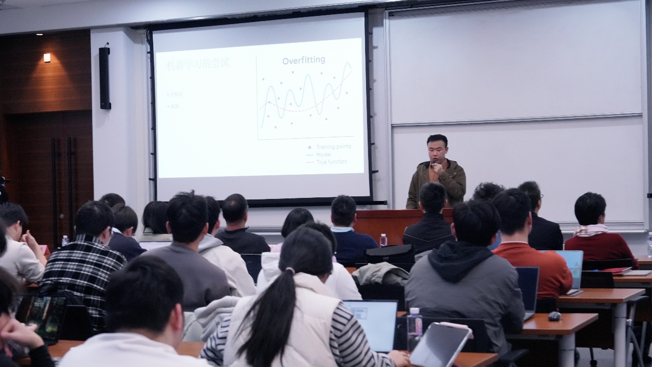 一等奖获奖队伍代表、中国科大凝聚态物理专业博士生任一雄分享了团队的参赛经验。他从成员背景、队伍分工、赛题解析等方面展开介绍,并详细讲解了模型搭建、因子选取和算法优化的具体过程,为同学们今后参与相关比赛提供了有益参考。