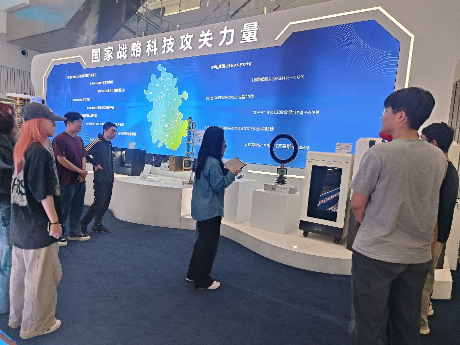 这些前沿科技不仅展示了中国在科技创新领域的雄厚实力,更让在场的每一位党员深切感受到了习近平总书记提出的“推进中国式现代化进程,科技要打头阵”这一战略思想的深远意义和实践价值。此外,在馆内众多创新成果中,中国科大团队的研究成果屡屡映入眼帘,这些成果犹如璀璨星辰,闪耀着智慧的光芒,它们深深触动了每一位观者的内心,激发起大家作为“科大人”潜藏于血脉之中的创新热情与力量。
