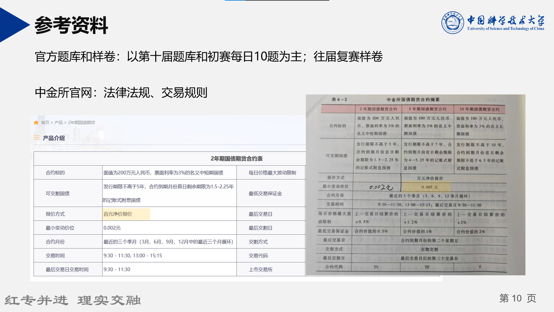 蔡钰韬学长作为中金所杯一等奖得主,聚焦金融衍生品市场,系统梳理了从初赛到复赛的备赛经验,并推荐了相关参考教材与学习资料。