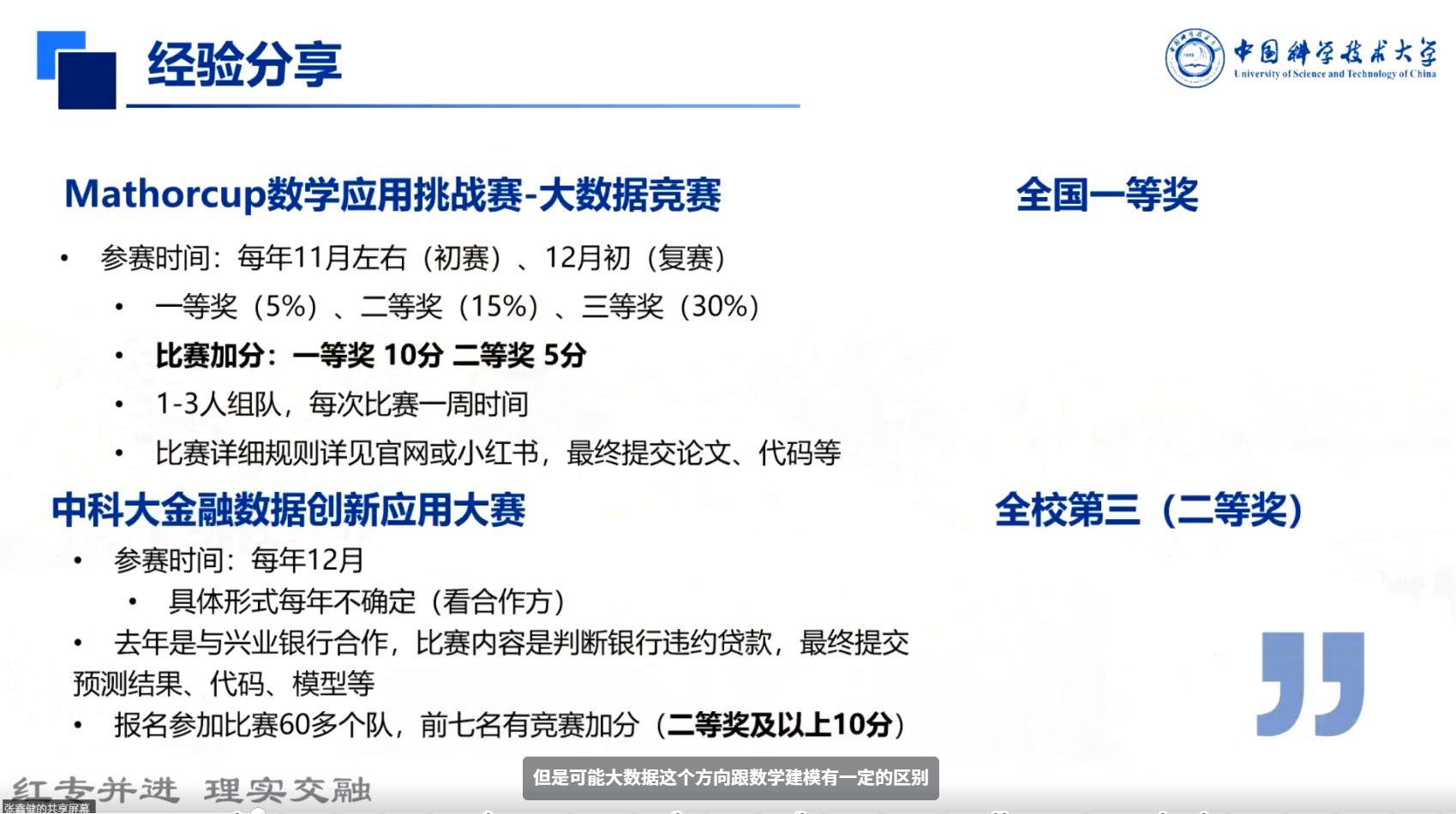 2025年9月28日晚,中国科学技术大学MF学生联合会学习部在线成功举办了金融竞赛经验分享会。活动荣幸邀请到六位在各类金融竞赛中斩获佳绩的学长学姐,为同学们带来深入而实用的经验解析。他们分别是张鑫健、孙一丹、田彬铃、孙国琼、蔡钰韬和范伟璇。