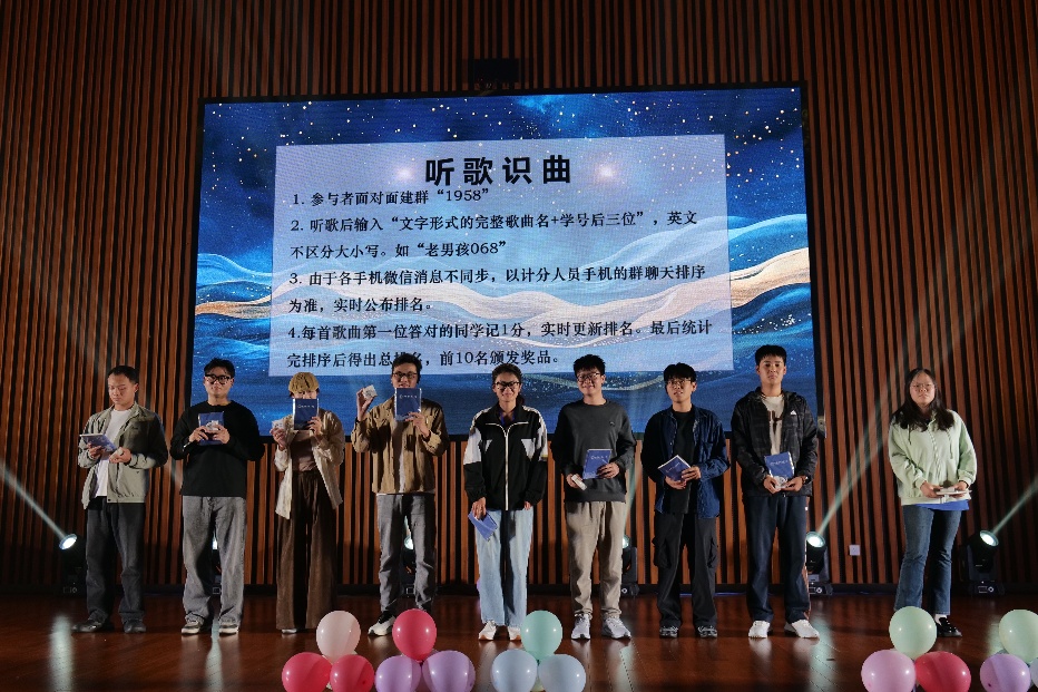 首个互动环节“听歌识曲”游戏登场,观众踊跃参与,现场气氛轻松活跃,趣味横生。