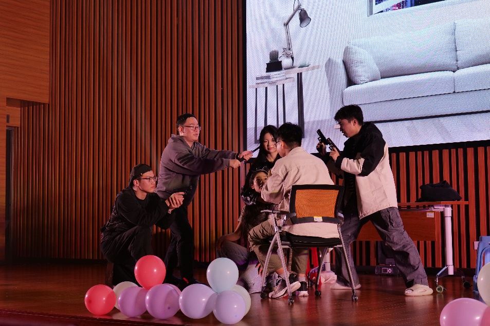 晚会进入到第二个互动环节——击鼓传花大冒险,游戏紧张刺激,再度掀起高潮,现场欢笑声此起彼伏。
