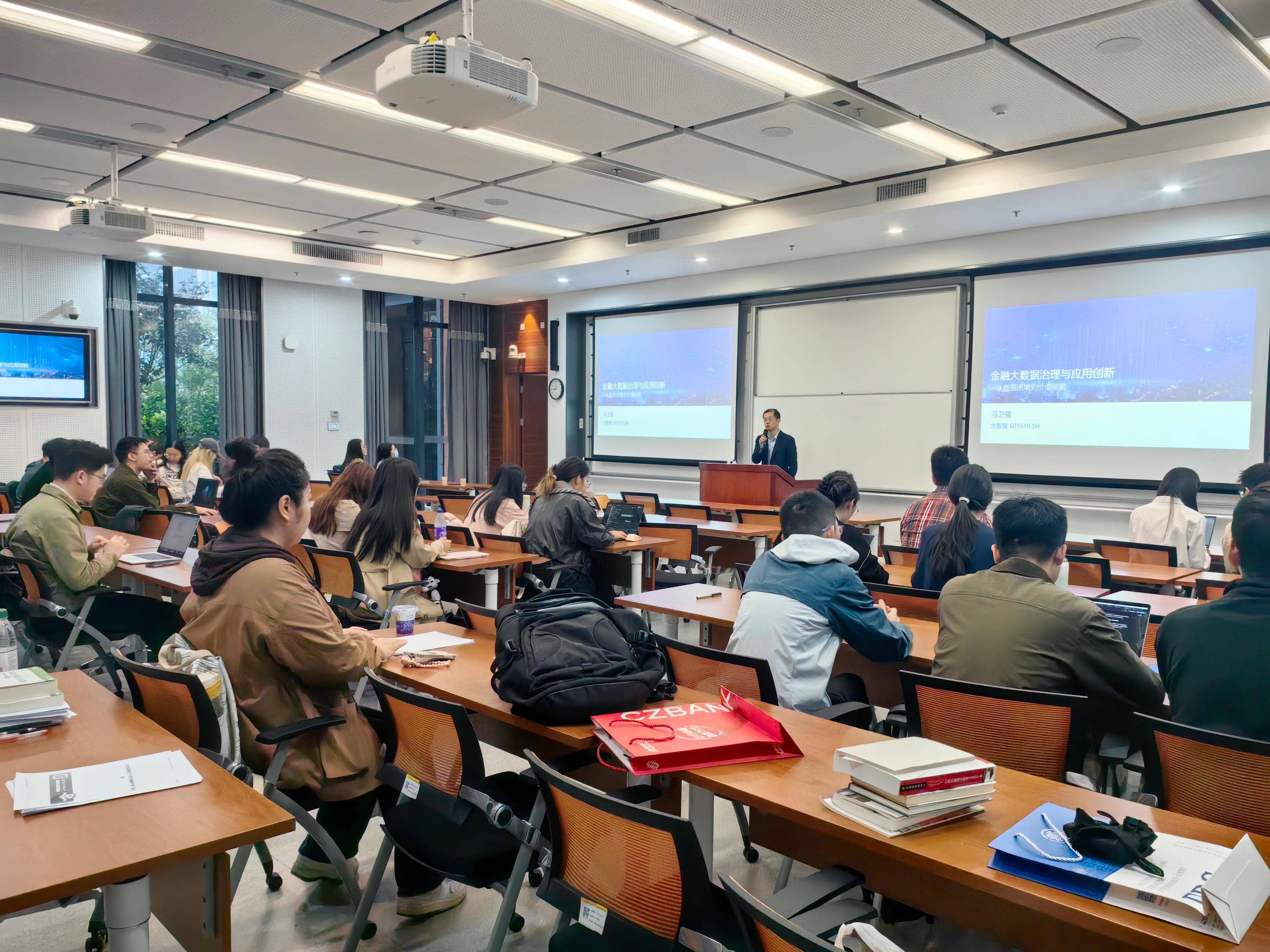2025年10月18日至11月22日,上海大智慧财汇数据科技有限公司总经理、MF业界导师冯卫强为2024级MF学生讲授《信息技术与金融创新》课程并参与了“与业界导师面对面活动”。