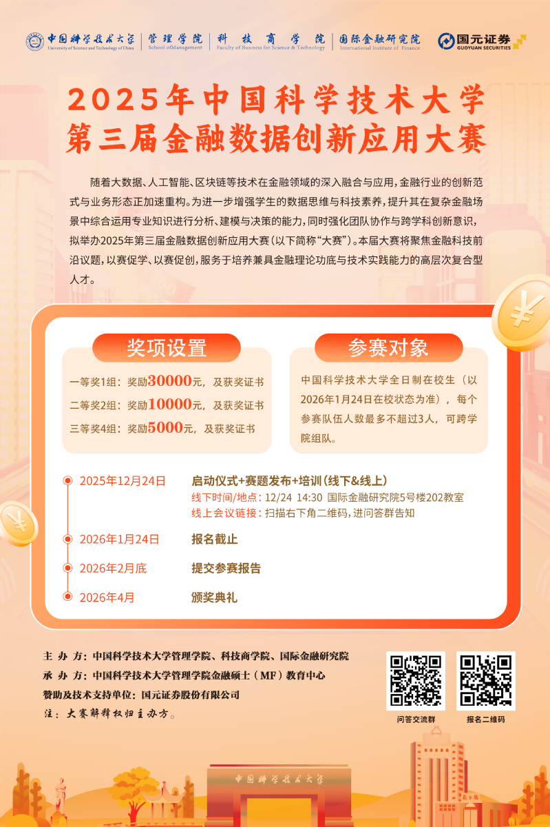 2025年中国科学技术大学第三届金融数据创新应用大赛报名启动!