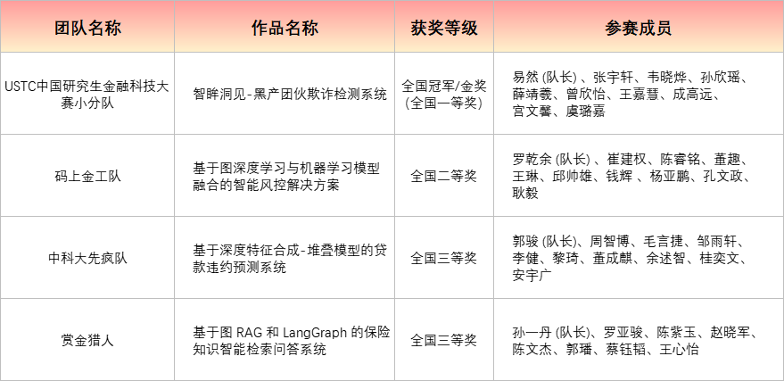 此次载誉,正是中国科大金融硕士(MF)项目深耕实践育人的生动注脚。MF项目始终以高水平学科竞赛为抓手,贯通“以赛促学、以赛促研、以赛促用”全过程,锤炼学生解决复杂问题的能力,培养面向未来的高层次金融科技创新人才。